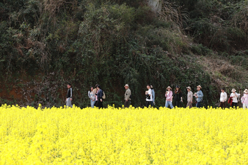伴著和煦的春風,滿載著職工的大巴車從公司出發。一路上大家歡聲笑語、其樂融融,大概一個半小時車程后,大家到達了此次活動的第一站——陳蔡千畝油菜花田。景區內盛開的油菜花競相爭艷,散發出濃濃春意。大家卸下平日工作中的緊張和疲憊,漫步于油菜花田,紛紛拿出相機拍照留念,盡情享受春光里的無限美好。